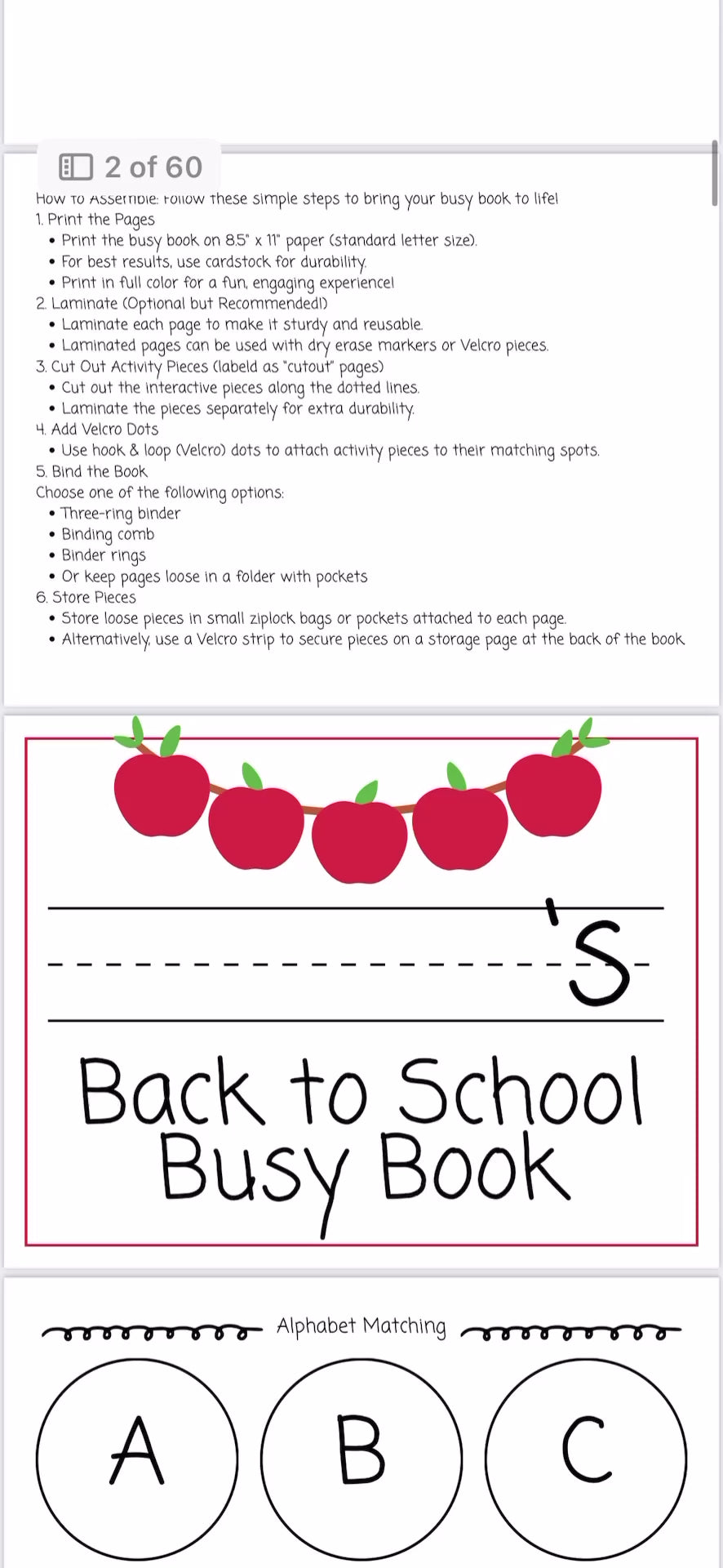 Back to School Printable Busy Book (60 Pages) — Busy Binder for Toddlers & Preschool